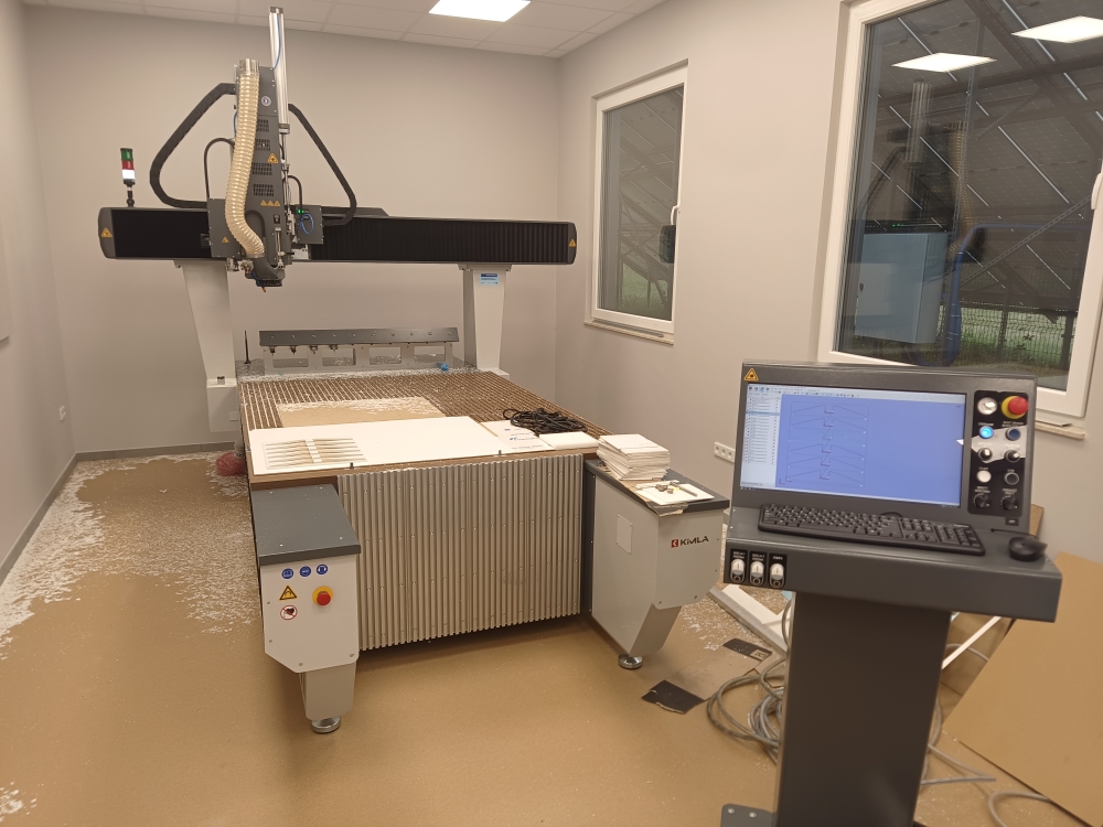 W czerwcu 2025 r. firma zakupiła fabrycznie nową maszynę - ploter frezujący 3D o wymiarach stołu 160 cm x 210 cm. Zaawansowane urządzenie z możliwością wykonywania detali w 3D charakteryzuje wysoka precyzja i powtarzalność obróbki. Dzięki tej inwestycji współfinansowanej ze środków unijnych oferujemy dla naszych Klientów nową usługę polegającą na obróbce mechanicznej różnych materiałów takich jak tworzywa sztuczne, aluminium, miedź, kompozyty, sklejka, drewno, MDF. Usługa jest adresowana dla naszych Klientów jako uzupełnienie produkowanej dla nich przez nas elektroniki, jak również dla Klientów zainteresowanych jedynie detalami wykonywanymi ploterem frezującym. Dzięki zastosowaniu napędów liniowych oraz wrzeciona o mocy 9 kW możliwa jest bardzo szybka praca maszyny z rozdzielczością 0,001 mm, w wyniku której powstają wyjątkowo równe krawędzie nie wymagające dalszej obróbki. Duża powierzchnia stołu umożliwia w zależności od potrzeb klika sposobów mocowania materiału - poprzez podciśnienie, montaż do stołu T-rowkowego, montaż do stołu pionowego, którym również dysponuje maszyna lub montaż w imadłach. Zamontowana na stałe głowica tnąco - bigująca z nożem wibracyjnym umożliwia cięcie i łamanie takich materiałów jak pianka z tworzywa sztucznego, guma, folia, papier lub karton. Sonda skanująca umożliwia kontrolę wymiarów wykonywanych detali lub skanowanie 3D różnych przedmiotów. Zakup maszyny pozwolił na automatyzację jednego z kluczowych procesów produkcyjnych w firmie - procesu obróbki mechanicznej oraz umożliwił wprowadzenie nowej usługi do oferty firmy.